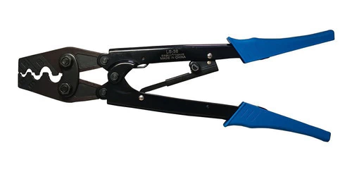 Alicate crimpador para Terminal de Compressão e Terminal Ilhos. Com catraca, oferecendo segurança para crimpar o Terminal até o fim. Fabricado em aço carbono e cabo em PP.