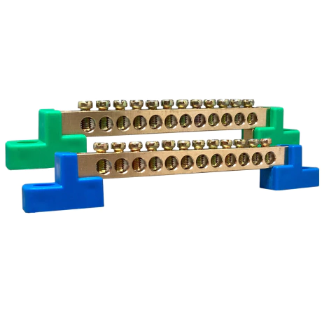 o 1un | Barramento Neutro 12 Furos (12 Polos) - Fixação Parafuso - Azul