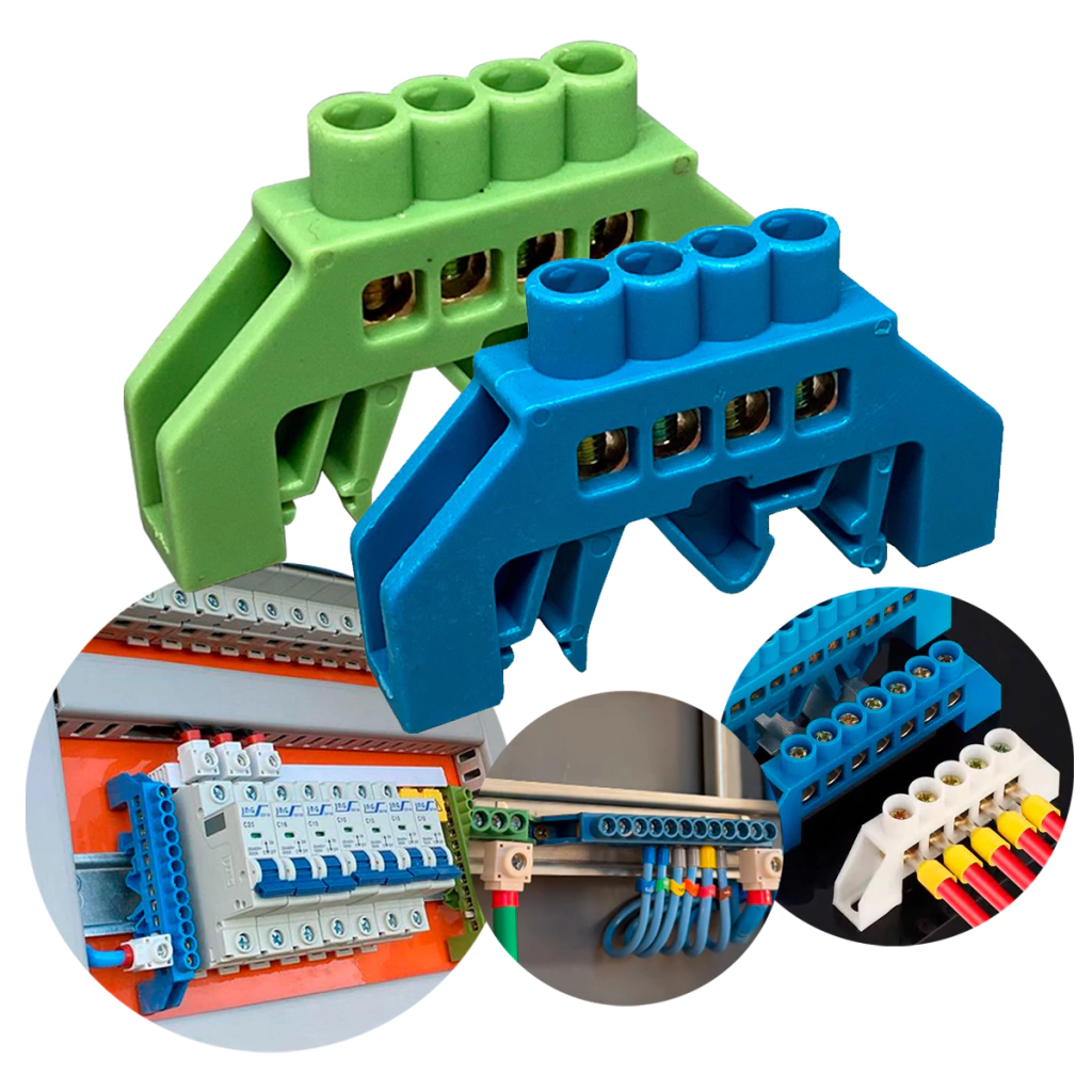 o 1un | Barramento Neutro 4 Furos (4 Polos) - Fixação Din - Azul