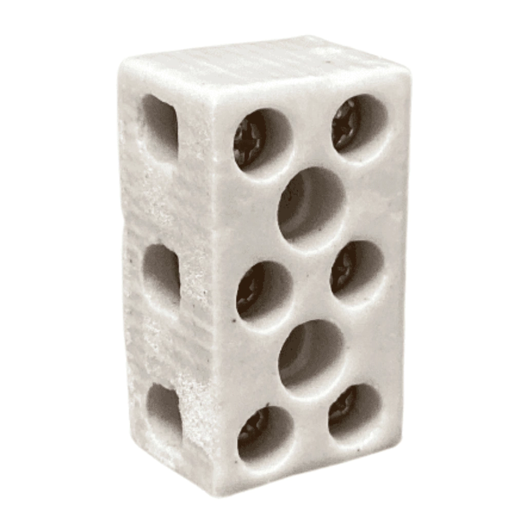 Os Conectores de Porcelana é um sistema de Emenda de fios e cabos com conexão por Parafusos proporcionando constante préssão de Contato, excelente condutividade e insignificante perda de tensão. Ocupam menos espaço quando comparado com as Emendas feitas com fitas isolantes convencionais, oferecendo melhor organização dos fios, eliminado o risco de desconexão acidental e mau contato. Ideal para conexões que exijam resistência à alta temperatura, como por exemplo, instalações de chuveiros elétricos, possui túnel e Parafuso em latão inoxidável, garantindo maior segurança às instalações.