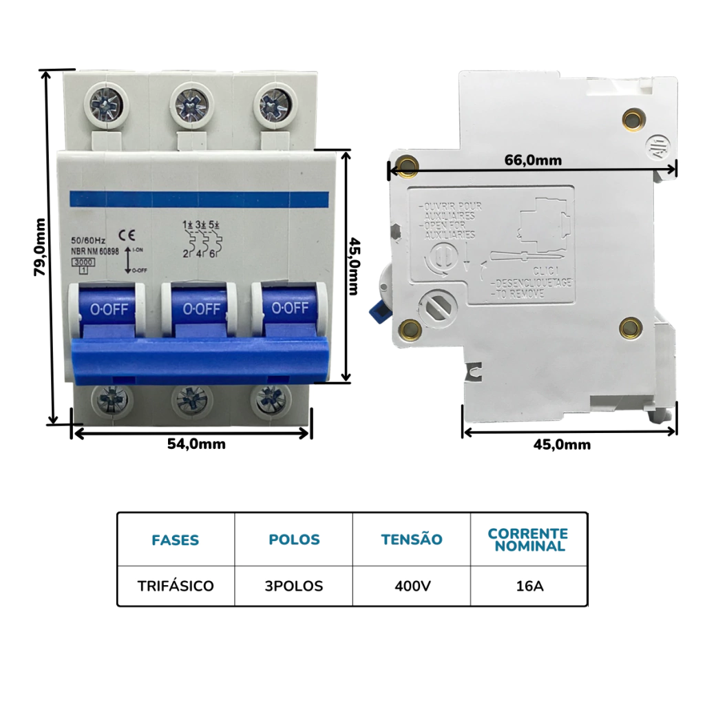 Disjuntor Dijuntor Tripolar 6A, 10A, 16A, 20A, 25A, 32A - Alta Qualidade