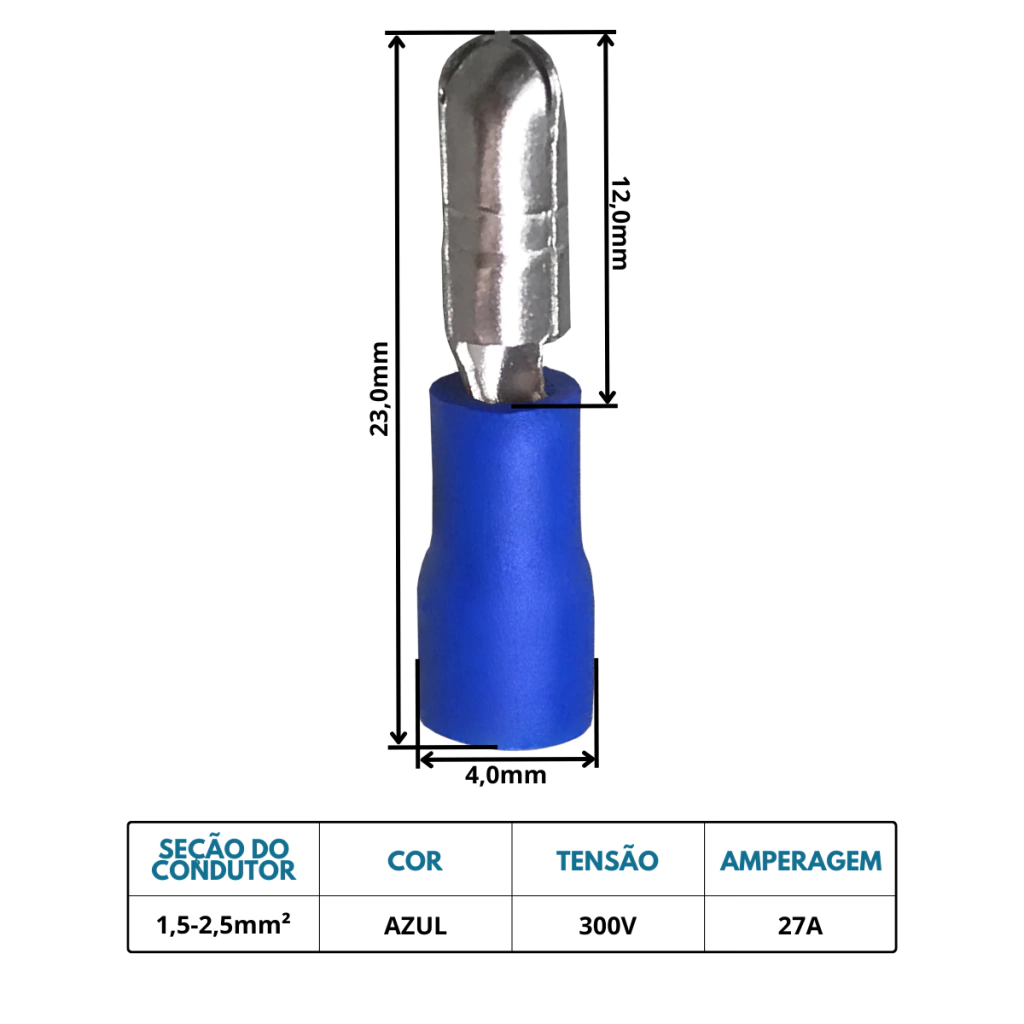 100un - Terminal Bala Macho Pré-Isolado 1.5 a 2.5 - Azul