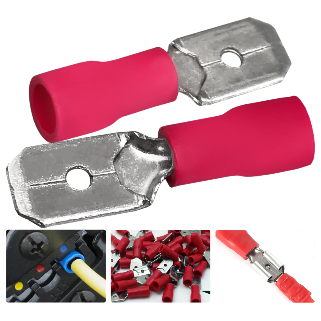 100un - Terminal Macho Pré-isolado 0,50 a 1,50mm - Vermelho