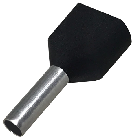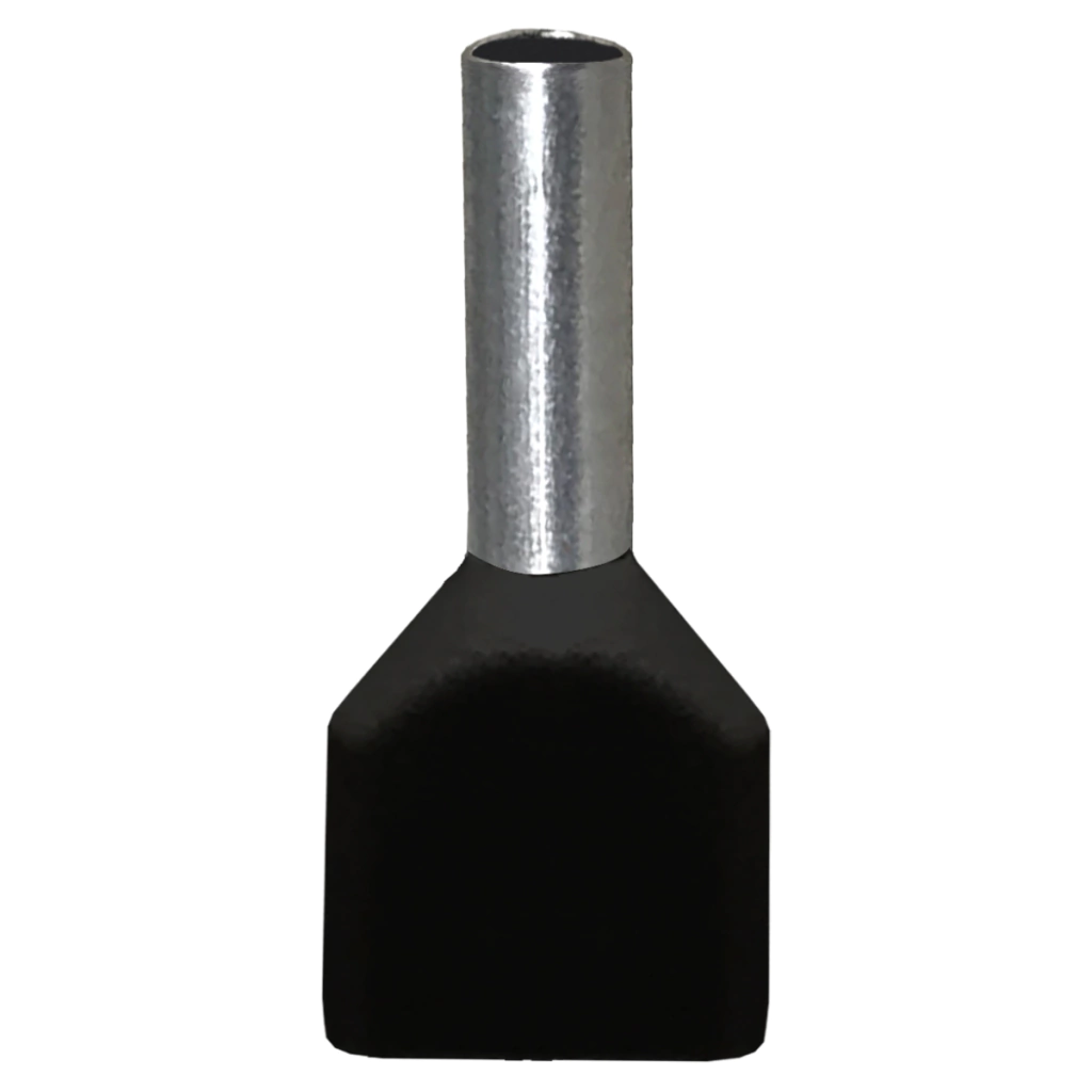 100un - Terminal Pré-isolado Tubular Ilhós Duplo 1,5mm - Comp. do Tubo 8mm - Preto