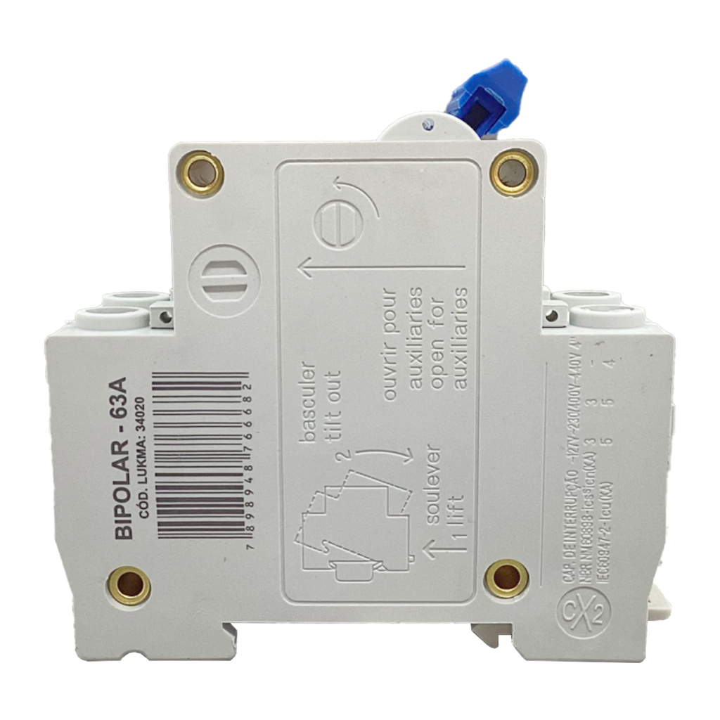01 un - Disjuntor Bipolar 6A, 10A, 16A, 20A, 25A, 32A, 40A, 50A, 63A