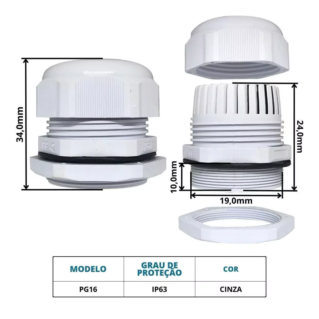 prénsa Cabo Pg16 5/8 Para Cabos com Largura entre 10 mm e 14 mm