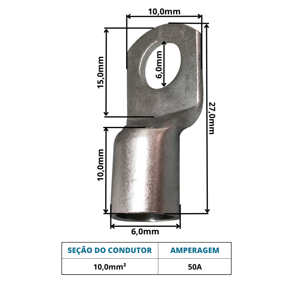 01un - Terminal de Compressão em cobre estanhado 10mm (Furo 6mm)